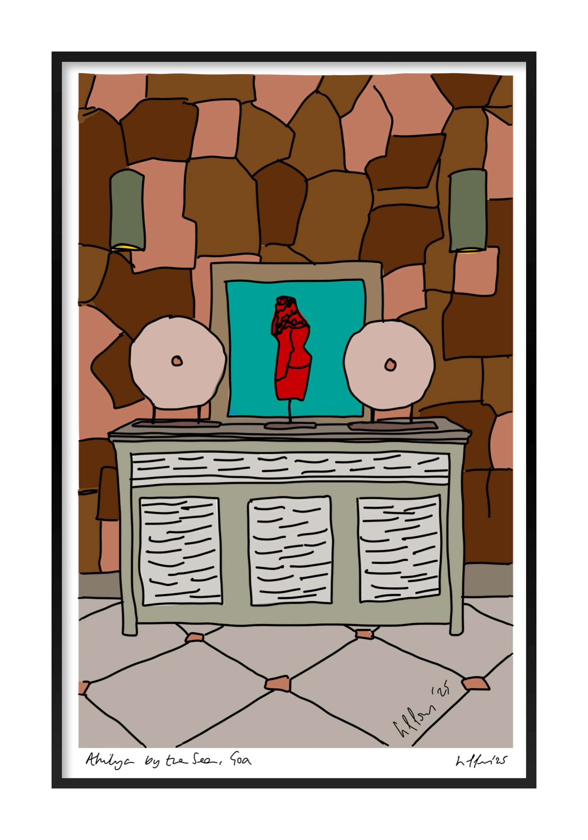 Each image has been sketched on an iPad after photographic research of the subject. The images have a signature blue sky and bold black outlines, often using the single line approach. The images are fun and colourful. Each image is titled and signed. Printed on 200gsm matte paper.