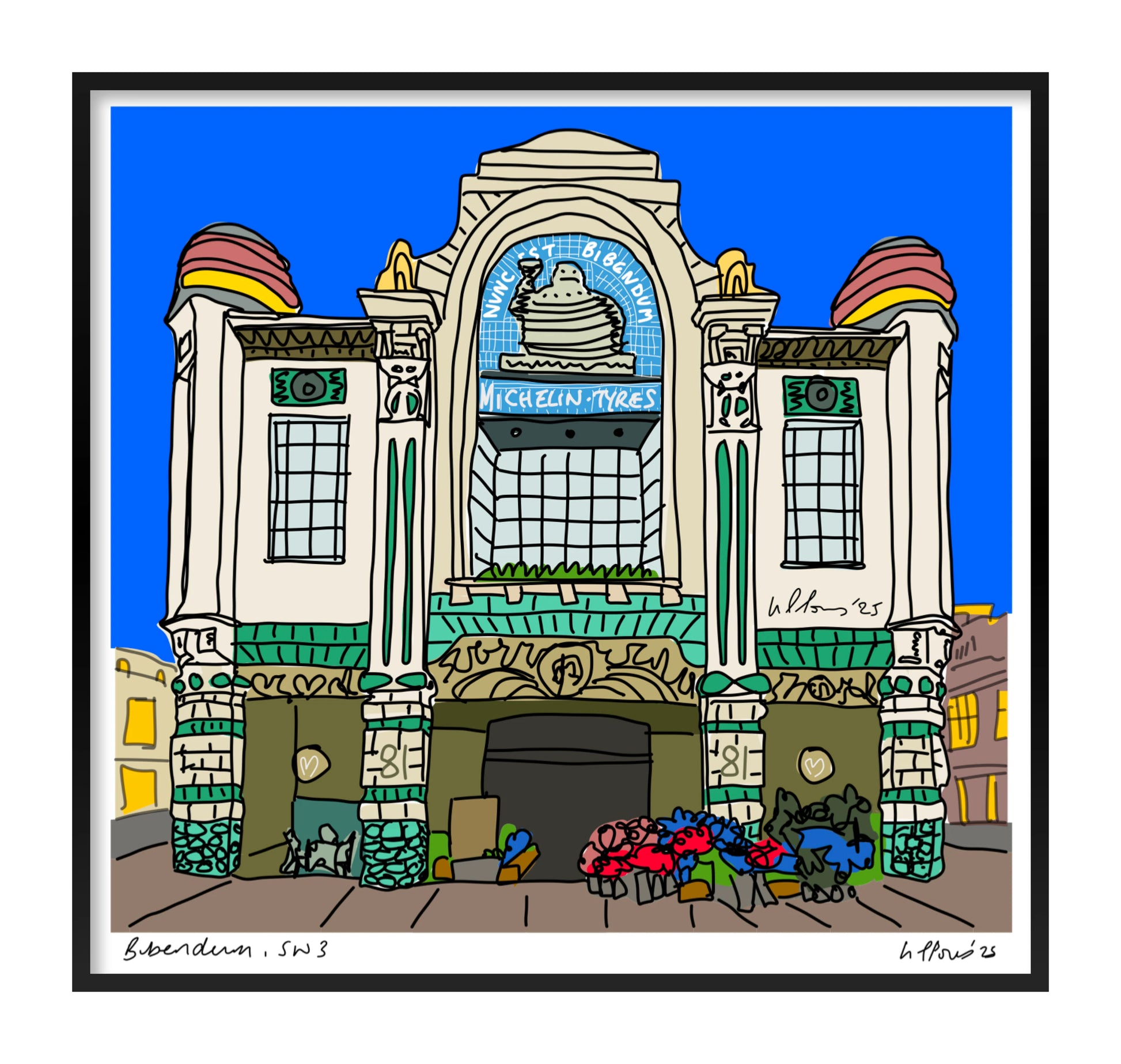 Each image has been sketched on an iPad after photographic research of the subject. The images have a signature blue sky and bold black outlines, often using the single line approach. The images are fun and colourful. Each image is titled and signed. Printed on 200gsm matte paper.